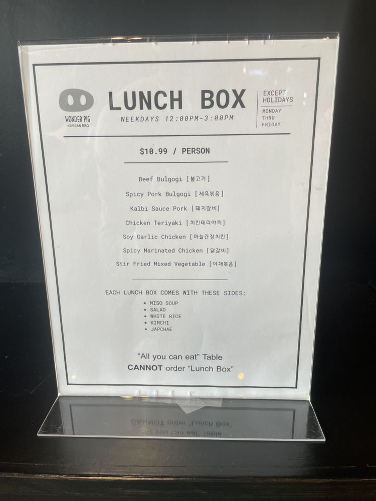 Welcome to Wonder Pig KBBQ, where the essence of Korean cuisine comes alive in a vibrant atmosphere. Located at 37-08 Queens Blvd, Long Island City, this trendy spot is perfect for groups and casual dining, offering both indoor and heated outdoor seating. Their menu features an enticing array of lunch boxes like the Beef Bulgogi and Spicy Marinated Chicken, each bursting with flavor and priced at just $13.00.